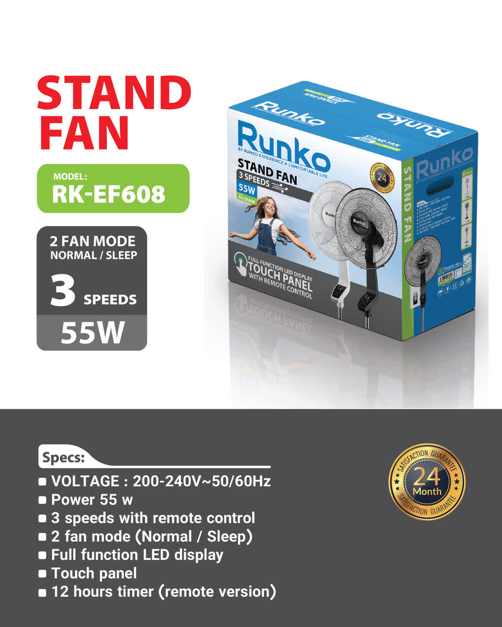 پنکه ایستاده رانکو مدل 608 مورد استفاده می‌دهد. این دستگاه در منازل، اداره‌ها، شرکت‌ها، مدارس، باشگاه‌ها، مطب‌ها و… قابل‌استفاده است. این پنکه با پره‌های پلاستیکی‌اش، صدای کمی ایجاد می‌کند. ارتفاع پنکه قابل‌تنظیم است تا برای موارد خاص هم استفاده شود. این مدل در چند سرعت می‌تواند فعالیت داشته باشد و مدل های پرتاب باد مختلفی دارند.   این پنکه محصول خاص رانکو است که در بازار لوازم‌ خانگی طرفداران زیادی دارد. رانکو با تولید و عرضه‌ی محصولات باکیفیت و اقتصادی، معروف و محبوب شده است.